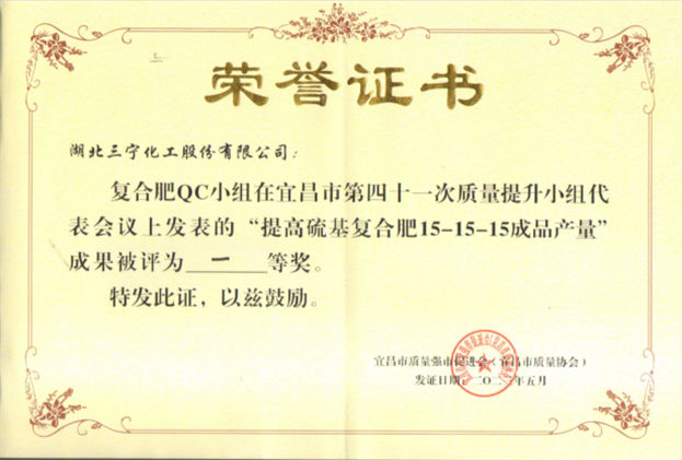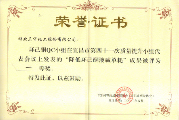 5月29日至5月31日,磷肥廠復(fù)合肥QC小組、錦綸公司環(huán)己酮QC小組代表公司參加宜昌市第四十一次質(zhì)量提升小組代表會議,參賽課題分別為《提高硫基復(fù)合肥15-15-15成品產(chǎn)量》、《降低環(huán)己酮液堿單耗》。
