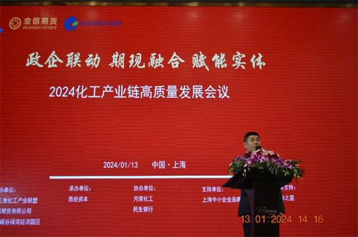 2024年1月13日上海市龍之夢(mèng)大酒店四樓翡翠廳座無(wú)虛席,2024化工產(chǎn)業(yè)鏈高質(zhì)量發(fā)展會(huì)議在此隆重舉行。本次研討會(huì)由長(zhǎng)三角化工產(chǎn)業(yè)聯(lián)盟、金信期貨有限公司、上海碳谷綠灣經(jīng)濟(jì)園區(qū)共同主辦,由西經(jīng)資本承辦,月榮化工和民生銀行協(xié)辦,得到證券之星的媒體支持。此次會(huì)議旨在推動(dòng)化工產(chǎn)業(yè)鏈的優(yōu)化升級(jí)和可持續(xù)發(fā)展,深度發(fā)揮期貨功能,推動(dòng)實(shí)體經(jīng)濟(jì)高質(zhì)量發(fā)展,促進(jìn)化工產(chǎn)業(yè)內(nèi)的交流與合作。