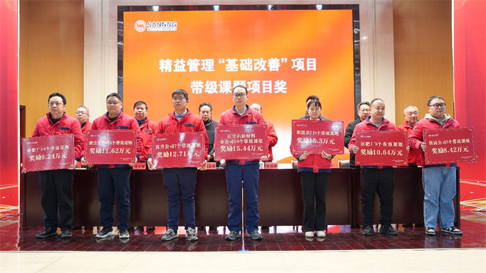 在精益管理“基礎(chǔ)改善”項(xiàng)目中,3個(gè)“標(biāo)桿級(jí)星級(jí)車間”團(tuán)隊(duì)代表、7個(gè)“帶級(jí)課題獎(jiǎng)”團(tuán)隊(duì)代表、10名“精益人才”依次登臺(tái)領(lǐng)獎(jiǎng)。 沉甸甸的榮譽(yù),不僅是對(duì)過(guò)往卓越貢獻(xiàn)的高度認(rèn)可,更是對(duì)全員接續(xù)奮斗、將管理提升做深做實(shí)、為公司創(chuàng)造扎實(shí)價(jià)值的殷切期許與激勵(lì)。