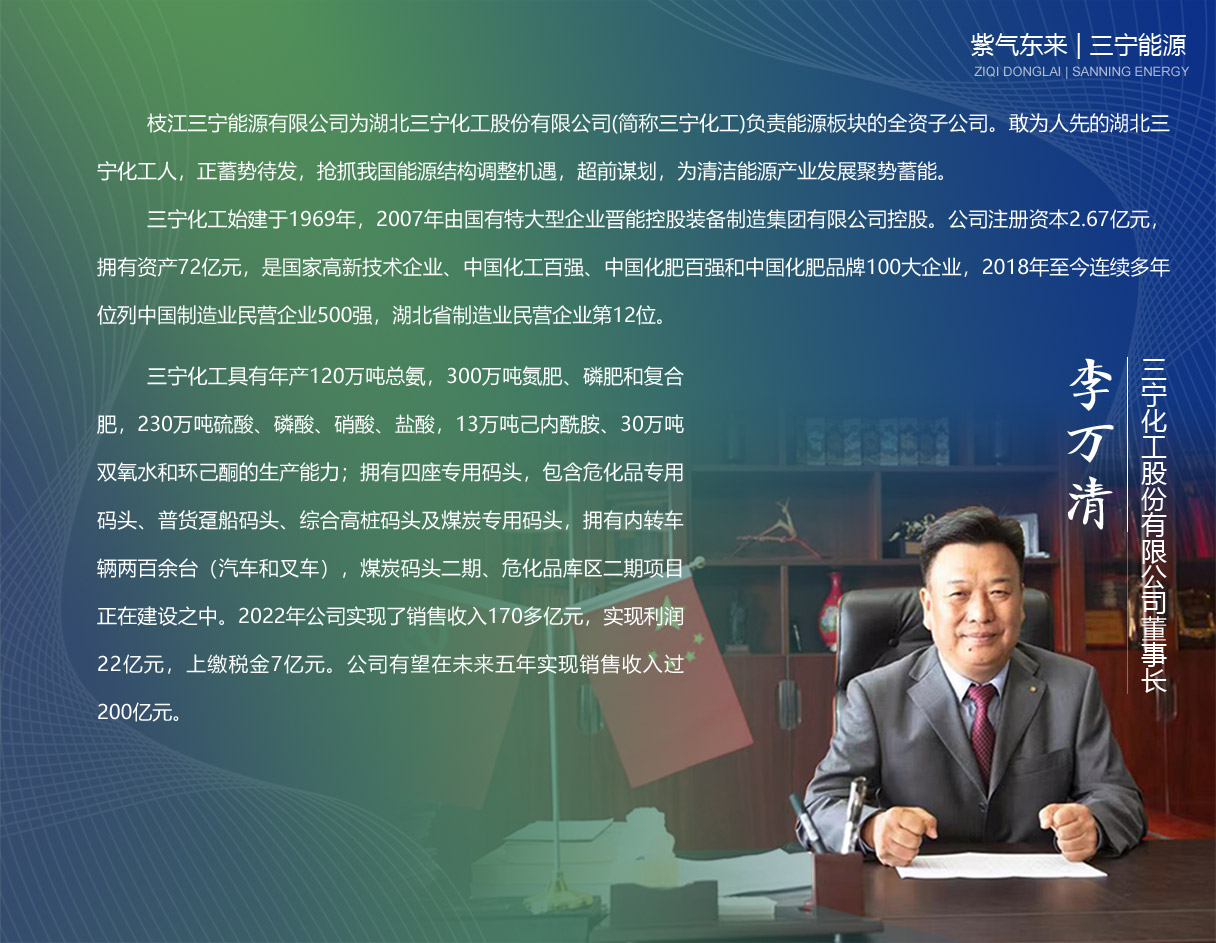 枝江三寧能源有限公司成立于2018年5月,注冊資本1億元人民幣,公司以打通國際能源市場至中國舟山港到長江流域的LNG、成品油和化工產(chǎn)品的供銷鏈為目標(biāo),利用長江黃金通道,確保清潔能源的運輸、接卸、倉儲供給基地及終端市場的穩(wěn)定。為實現(xiàn)可持續(xù)發(fā)展的戰(zhàn)略步驟,搶抓煤改氣、油改氣的能源結(jié)構(gòu)調(diào)整機遇,并積極促進本地化工產(chǎn)業(yè)向高端化、精細化發(fā)展,公司依托枝江姚家港、白洋、田家河、五峰等工業(yè)園強大的產(chǎn)業(yè)鏈,利用羅家河深水港優(yōu)越的地理條件,全力推進姚家港配套碼頭和綜合能源庫的建設(shè)。